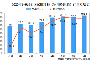 中商情报网讯:据中商产业研究院数据库显示,2020年9月全国家用电冰箱(家用冷冻冷藏箱)产量为935.8万台,同比增长28.2%。2020年1-9月全国家用电冰箱(家用冷冻冷藏箱)...【详情】