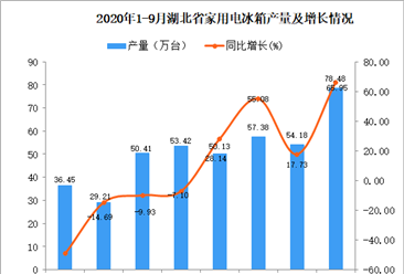 中商情报网讯:据中商产业研究院数据库显示,2020年9月湖北省家用电冰箱产量为78.48万台,同比增长65.95%。2020年1-9月湖北省家用电冰箱产量为409.66万台,同比增长5.39%...【详情】