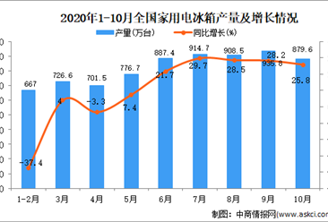 中商情报网讯:据中商产业研究院数据库显示,2020年10月全国家用电冰箱产量为879.6万台,同比增长25.8%。2020年10月全国家用电冰箱产量为7381.7万台,同比增长4%。 数据...【详情】