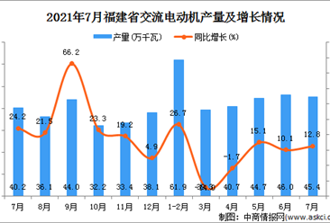 中商情报网讯:据中商产业研究院数据库显示,2021年7月福建省交流电动机45.4万千瓦,同比增长12.8%。 数据来源:中商产业研究院数据库 2021年7月福建省交流电动机增长情...【详情】