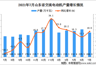 中商情报网讯:据中商产业研究院数据库显示,2021年7月山东省交流电动机200万千瓦,同比增长18%。 数据来源:中商产业研究院数据库 2021年7月山东省交流电动机增长情况 ...【详情】