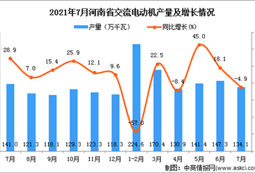 中商情报网讯:据中商产业研究院数据库显示,2021年7月河南省交流电动机134.11万千瓦,同比下降4.9%。 数据来源:中商产业研究院数据库 2021年7月河南省交流电动机增长...【详情】