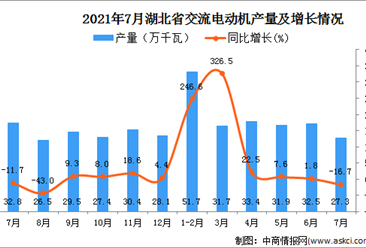 中商情报网讯:据中商产业研究院数据库显示,2021年7月湖北省交流电动机27.3万千瓦,同比下降16.7%。 数据来源:中商产业研究院数据库 2021年7月湖北省交流电动机增长情...【详情】