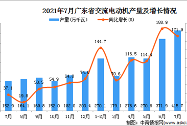 中商情报网讯:据中商产业研究院数据库显示,2021年7月广东省交流电动机415.7万千瓦,同比增长171.9%。 数据来源:中商产业研究院数据库 2021年7月广东省交流电动机增长...【详情】
