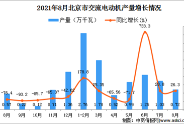 中商情报网讯:据中商产业研究院数据库显示,2021年8月北京市交流电动机0.71万千瓦,同比增长26.3%。 数据来源:中商产业研究院数据库 2021年8月北京市交流电动机增长情...【详情】