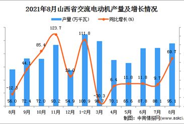 中商情报网讯:据中商产业研究院数据库显示,2021年8月山西省交流电动机95.1万千瓦,同比增长69.7%。 数据来源:中商产业研究院数据库 2021年8月山西省交流电动机增长情...【详情】