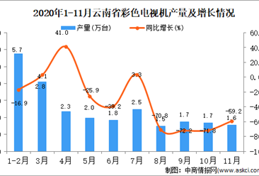 中商情报网讯:据中商产业研究院数据库显示,2020年11月云南省彩色电视机产量为1.6万台,同比下降59.2%。 数据来源:中商产业研究院数据库 2020年11月云南省彩色电视机...【详情】