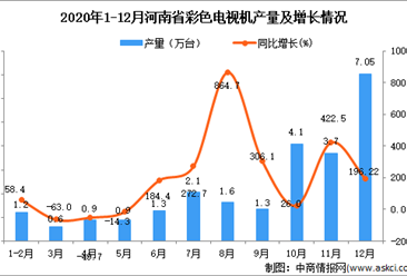 中商情报网讯:据中商产业研究院数据库显示,2020年12月河南省彩色电视机产量为7.05万台,同比增长196.22%。 数据来源:中商产业研究院数据库 2020年12月河南省彩色电视...【详情】