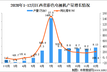 中商情报网讯:据中商产业研究院数据库显示,2020年12月江西省彩色电视机产量为9.13万台,同比增长208.4%。 数据来源:中商产业研究院数据库 2020年12月江西省彩色电视...【详情】