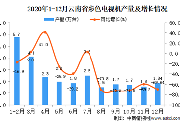 中商情报网讯:据中商产业研究院数据库显示,2020年12月云南省彩色电视机产量为1.84万台,同比下降69.64%。 数据来源:中商产业研究院数据库 2020年12月云南省彩色电视...【详情】