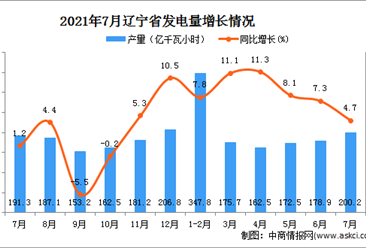 中商情报网讯:据中商产业研究院数据库显示,2021年7月辽宁省发电量200.2亿千瓦小时,同比上升4.7%。 数据来源:中商产业研究院数据库 2021年7月辽宁省发电量增长情况 ...【详情】