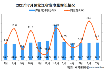 中商情报网讯:据中商产业研究院数据库显示,2021年7月黑龙江发电量94.5亿千瓦小时,同比上升6.2%。 数据来源:中商产业研究院数据库 2021年7月黑龙江发电量增长情况 ...【详情】