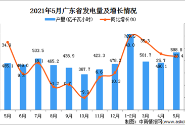 中商情报网讯:据中商产业研究院数据库显示,2021年5月广东省发电量产量为598.8亿千瓦小时,同比增长23.4%。 数据来源:中商产业研究院数据库 2021年5月广东省发电量增长...【详情】