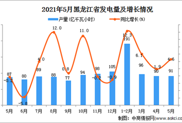中商情报网讯:据中商产业研究院数据库显示,2021年5月黑龙江发电量为91亿千瓦小时,同比增长4.6%。 数据来源:中商产业研究院数据库 2021年5月黑龙江发电量增长情况 数...【详情】