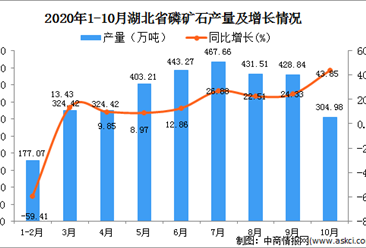 中商情报网讯:据中商产业研究院数据库显示,2020年10月湖北省磷矿石产量为304.98万吨,同比增长43.85%。 数据来源:中商产业研究院数据库 2020年10月湖北省磷矿石产量...【详情】