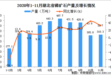 中商情报网讯:据中商产业研究院数据库显示,2020年11月湖北省磷矿石产量为310.3万吨,同比增长32.7%。 数据来源:中商产业研究院数据库 2020年11月湖北省磷矿石产量增...【详情】