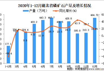 中商情报网讯:据中商产业研究院数据库显示,2020年12月湖北省磷矿石产量为464.72万吨,同比增长18.85%。 数据来源:中商产业研究院数据库 2020年12月湖北省磷矿石增长...【详情】