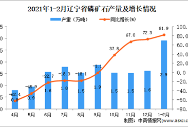 中商情报网讯:据中商产业研究院数据库显示,2021年1-2月辽宁省磷矿石产量为2.9万吨,同比增长81.9%。 数据来源:中商产业研究院数据库 2021年1-2月辽宁省磷矿石产量增...【详情】