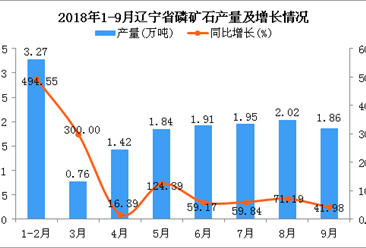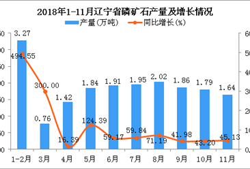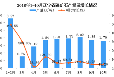 中商情报网讯:据中商产业研究院数据库显示,2018年3-8月辽宁省磷矿石产量连续5个月持续增长,2018年9-10月辽宁省磷矿石产量有所回落,2018年10月辽宁省磷矿石产量同比增...【详情】