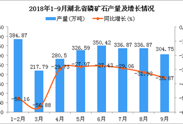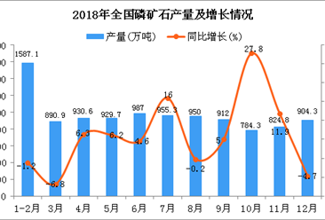 中商情报网讯:据中商产业研究院数据库显示,2018年3季度全国磷矿石产量有明显下降,2018年3季度全国磷矿石产量相比2季度下降30%。2018年12月全国磷矿石产量为904.3万吨,...【详情】