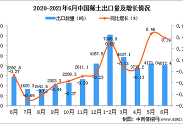 中商情报网讯:据中商产业研究院数据库显示,2021年6月中国稀土出口量4012.4万吨,同比增长0.39%。 数据来源:中商产业研究院数据库 从金额方面来看,2021年6月中国稀土...【详情】