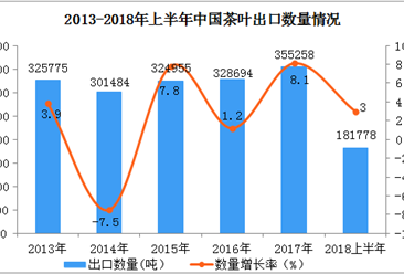 中商情报网讯:据中商产业研究院发布的《2018-2023年中国茶叶行业市场前景及投资机会研究报告》数据统计显示,2018年6月中国出口茶叶36689吨,同比增长23.8个百分点。1-6...【详情】