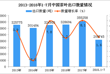 中商情报网讯:据中商产业研究院数据库显示,2014年-2017年中国茶叶出口量呈增长趋势,2017年中国茶叶出口量为355258吨,同比增长8.1%。2018年1-7月中国茶叶出口量持续增...【详情】