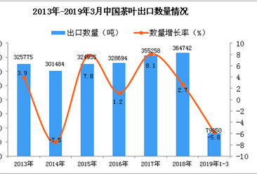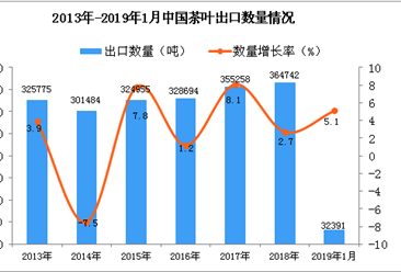 中商情报网讯:据中商产业研究院数据库显示,2014年-2018年中国茶叶出口量呈增长趋势,2019年1-4月中国茶叶出口量为110419吨,同比下降3.7%。 数据来源:中商产业研究院...【详情】