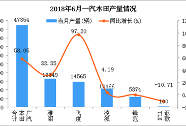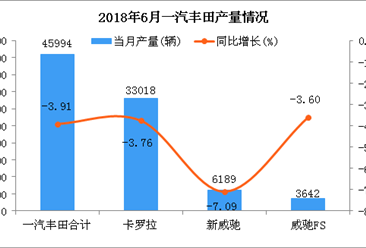 中商情报网讯:据中商产业研究院数据库显示,2018年6月一汽丰田轿车产量为45994辆,同比下降3.91%。2018年1月-6月一汽丰田轿车累计产量为252160辆,同比下降5.36%。2017年...【详情】