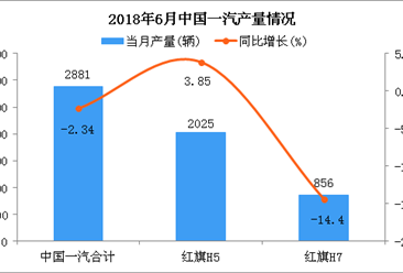 中商情报网讯:据中商产业研究院数据库显示,2018年6月一汽轿车产量为6296辆,同比下降14.94%。2018年1月-6月一汽轿车累计产量为36477辆,同比增长32.32%。2017年1月-6月...【详情】