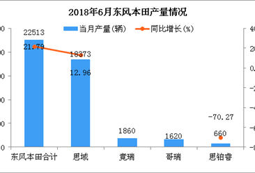 中商情报网讯:据中商产业研究院数据库显示,2018年6月东风本田轿车产量为22513辆,同比增长21.79%。2018年1月-6月东风本田轿车累计产量为122819辆,同比下降12.22%。从销...【详情】