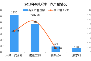 中商情报网讯:据中商产业研究院数据库显示,2018年6月天津一汽轿车产量为1230辆,同比下降44.82%。2018年1月-6月天津一汽轿车累计产量为11674辆,同比增长75.97%。2017年...【详情】