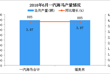 中商情报网讯:据中商产业研究院数据库显示,2018年6月一汽海马轿车产量为885辆,同比增长3.87%。2018年6月一汽海马轿车累计产量为2390辆,同比增长120.7%。2017年1月-6月...【详情】