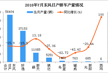 中商情报网讯:据中商产业研究院数据库显示,2018年7月东风日产轿车产量为56404辆,同比下降15.9%。2018年1-7月东风日产轿车产量为382453辆,同比增长26.79%。 产量第一的...【详情】