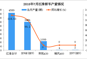 中商情报网讯:据中商产业研究院数据库显示,2018年7月江淮轿车产量为4589辆,同比增长118.63%。2018年1-7月江淮轿车产量为25453辆,同比增长67.97%。 产量第一的车型是IE...【详情】