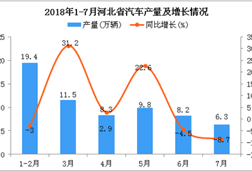 中商情报网讯:据中商产业研究院数据库显示,2018年3月河北省汽车产明显下降,2018年4月河北省汽车产量为8.3万辆,同比增长2.9%。2018年5月河北省汽车产量有小幅度回升,2...【详情】