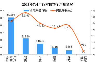 中商情报网讯:据中商产业研究院数据库显示,2018年7月广汽本田轿车产量为50359辆,同比增长6.35%。2018年1-7月广汽本田轿车产量为255208辆,同比增长29.25%。 产量第一的...【详情】