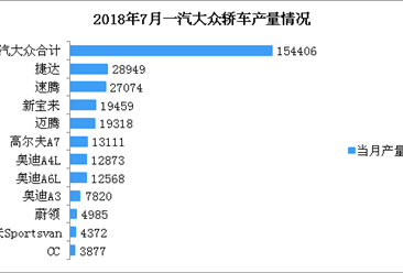 中商情报网讯:据中商产业研究院数据库显示,2018年7月上汽大众轿车产量为95771辆,同比下降26.51%。2018年1-7月上汽大众轿车产量为875829辆,同比下降26.65%。 产量第一...【详情】