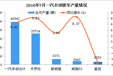 中商情报网讯:据中商产业研究院数据库显示,2018年7月一汽丰田轿车产量为48942辆,同比增长6.41%。2018年1-7月一汽丰田轿车产量为301102辆,同比增长5%。 产量第一的车型...【详情】