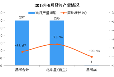 中商情报网讯:据中商产业研究院数据库显示,2018年6月昌河轿车产量为297辆,同比下降88.67%。2018年1月-6月昌河轿车累计产量为11115辆,同比下降85.21%。2017年1月-6月昌...【详情】