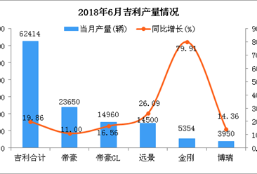 中商情报网讯:据中商产业研究院数据库显示,2018年6月吉利轿车产量为62414辆,同比增长19.86%。2018年1月-6月吉利轿车累计产量为315840辆,同比增长32.79%。 帝豪产量居...【详情】
