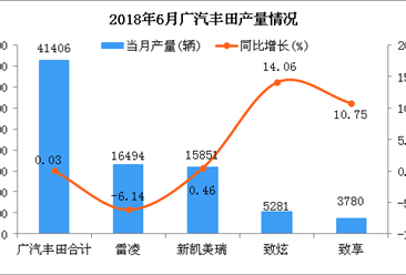 中商情报网讯:据中商产业研究院数据库显示,2018年6月广汽丰田轿车产量为41406辆,同比增长0.03%。2018年1月-6月广汽丰田轿车累计产量为206633辆,同比增长29.88%。2017...【详情】