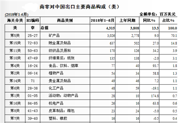 中商情报网讯:据南非国税局统计,2018年1-6月,南非货物进出口额为926.7亿美元,比上年同期(下同)增长11.1%。其中,出口462.2亿美元,增长8%;进口464.5亿美元,增长14...【详情】
