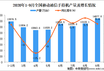 中商情报网讯:据中商产业研究院数据库显示,2020年9月全国手机产量14877.8万台,同比增长0.4%。2020年1-9月全国手机产量101511.3万台,同比下降5.1%。 数据来源:中商...【详情】