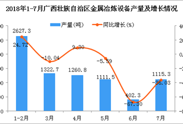 中商情报网讯:据中商产业研究院数据库显示,2018年3-6月广西壮族自治区金属冶炼设备产量呈下降趋势,2018年6月广西壮族自治区金属冶炼设备产量为402.3吨,同比下降67.3%...【详情】