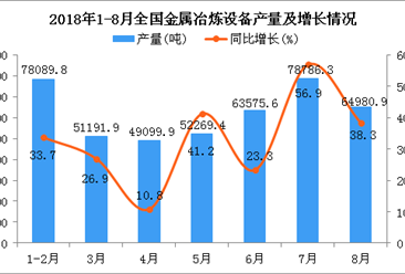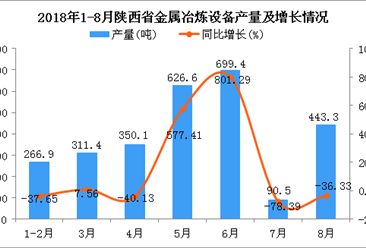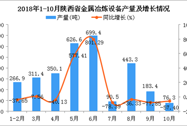 中商情报网讯:据中商产业研究院数据库显示,2018年8-10月陕西省金属冶炼设备产量大幅度下降,2018年10月陕西省金属冶炼设备产量下降幅度有所减缓;2018年10月陕西省金属...【详情】
