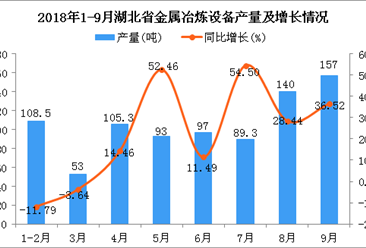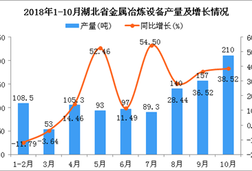 中商情报网讯:据中商产业研究院数据库显示,2018年7-10月湖北省金属冶炼设备产量连续3个月大幅度增长,2018年10月湖北省金属冶炼设备产量同比增长4成;2018年10月湖北省...【详情】