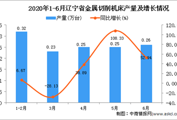 中商情报网讯:据中商产业研究院数据库显示,2020年6月辽宁省金属切削机床产量增长,2020年6月辽宁省金属切削机床产量为0.26万台,同比增长52.94%。2020年1-6月辽宁省金属...【详情】