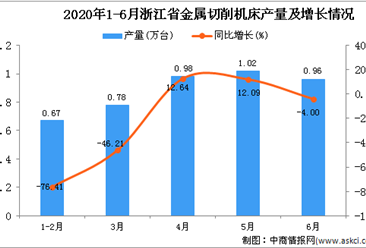 中商情报网讯:据中商产业研究院数据库显示,2020年6月浙江省金属切削机床产量下降,2020年6月浙江省金属切削机床产量为0.96万台,同比下降4%。2020年1-6月浙江省金属切削...【详情】