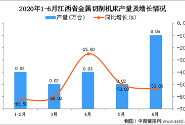中商情报网讯:据中商产业研究院数据库显示,2020年6月江西省金属切削机床产量增长,2020年6月江西省金属切削机床产量为0.06万台,同比下降53.85%。2020年1-6月江西省金属...【详情】